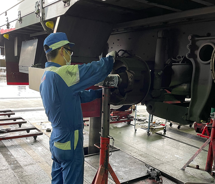 実際に働き始めてからは一般乗用車の整備から未経験の大型車の整備に変わり、最初は戸惑うこともありました。