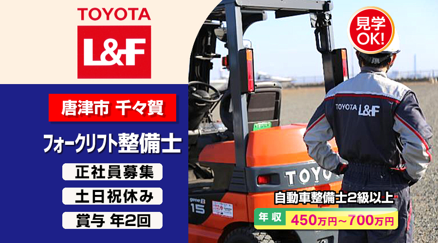 自動車整備士2級以上求人!年収450万円以上!佐賀県 唐津市千々賀字敷坪 トヨタL&F福岡株式会社 転職採用情報!給料・環境・社会保険充実!
