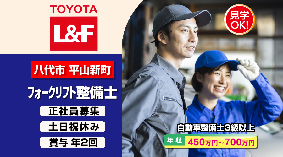 自動車整備士2級以上求人!年収450万円以上!熊本県八代市平山新町 トヨタL&F熊本株式会社 転職採用情報!給料・環境・社会保険充実!