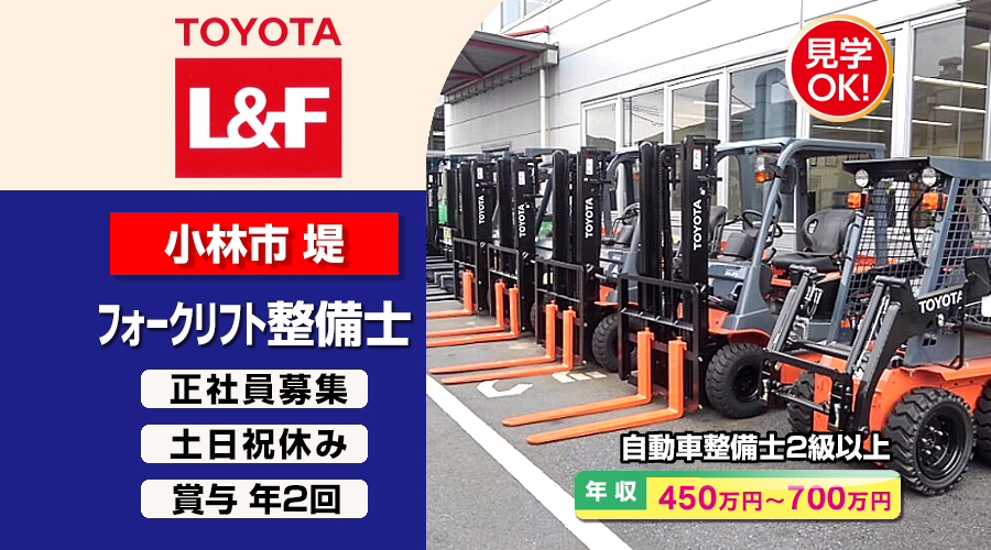 自動車整備士2級以上求人!年収450万円以上!宮崎県小林市堤 トヨタL&F宮崎株式会社 転職採用情報!給料・環境・社会保険充実!