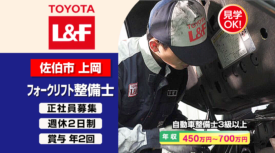 自動車整備士3級以上求人!年収450万円以上!大分県佐伯市 トヨタL&F大分株式会社 転職採用情報!働きながらでも転職サポート致します。