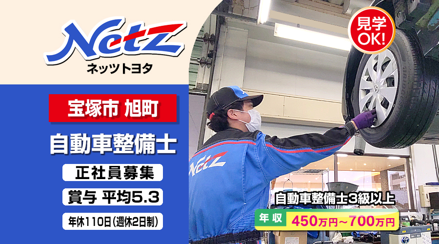自動車整備士3級以上求人!年収450万円以上!兵庫県宝塚市旭町 ネッツトヨタ神戸株式会社 転職採用情報!働きながらでも転職サポート致します。