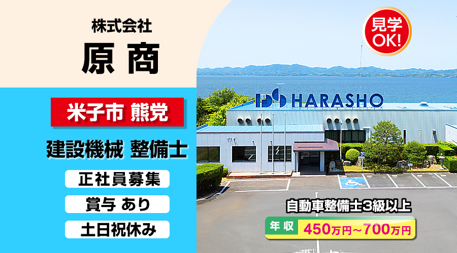 自動車整備士3級以上求人!年収450万円以上!鳥取県米子市熊党 株式会社原商 転職採用情報!働きながらでも転職サポート致します。