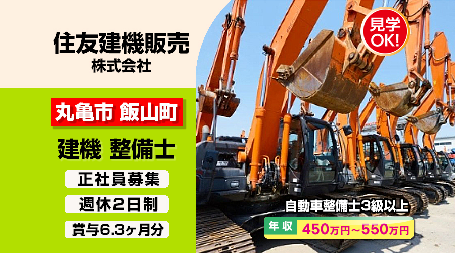 住友建機販売株式会社【住友建機販売】 建機整備士・メカニック(丸亀市飯山町)