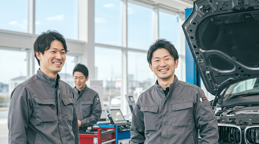 仕事内容 | ①車検・点検・修理などの受付。 ②お客様からのヒアリングした情報をテクニシャン(メカニック)に落とし込み、修理依頼をします。 ③修理後の結果をお客様へご説明、そしてお引渡し。