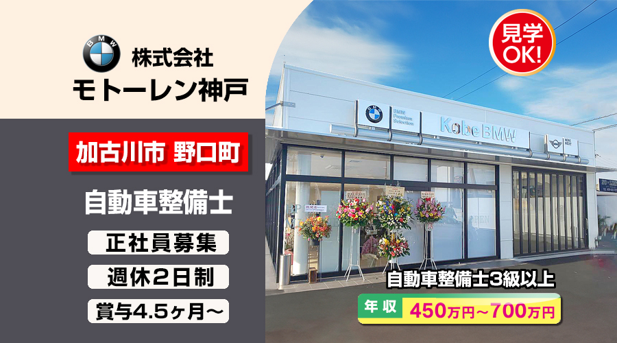 株式会社モトーレン神戸【モトーレン神戸】 自動車整備士(加古川市野口町)