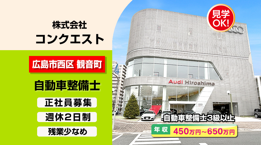 株式会社コンクエスト(アウディ広島)【コンクエスト】 自動車整備士・メカニック(広島市西区観音町)