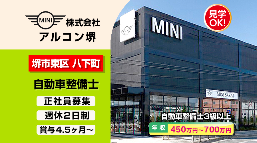 株式会社アルコン堺(MINI堺店)【アルコン堺】 自動車整備士・メカニック(堺市東区八下町)