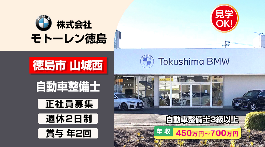 株式会社モトーレン徳島【モトーレン徳島】 自動車整備士・メカニック(徳島市山城西)