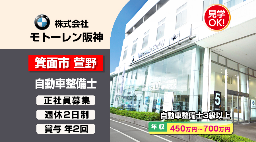 株式会社モトーレン阪神(Hanshin BMW 箕面支店)【モトーレン阪神】 自動車整備士・メカニック(箕面市萱野)