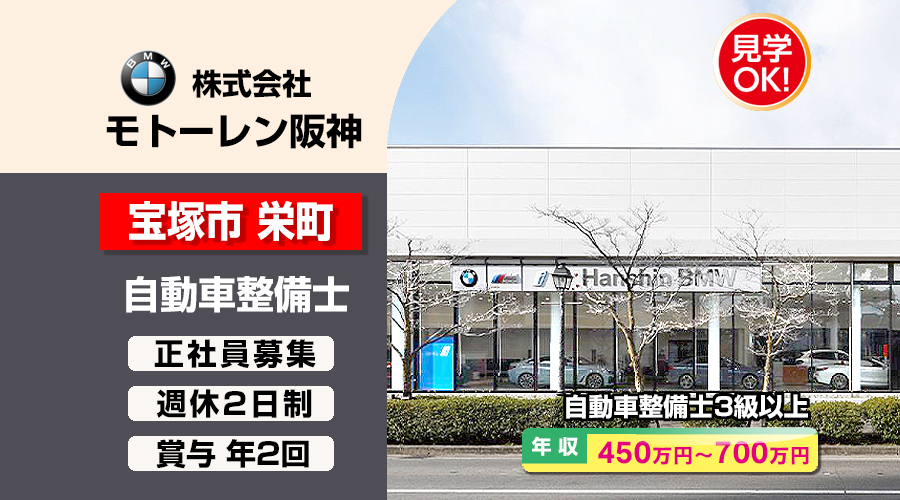 株式会社モトーレン阪神(Hanshin BMW 宝塚支店)【モトーレン阪神】 自動車整備士・メカニック(宝塚市栄町)