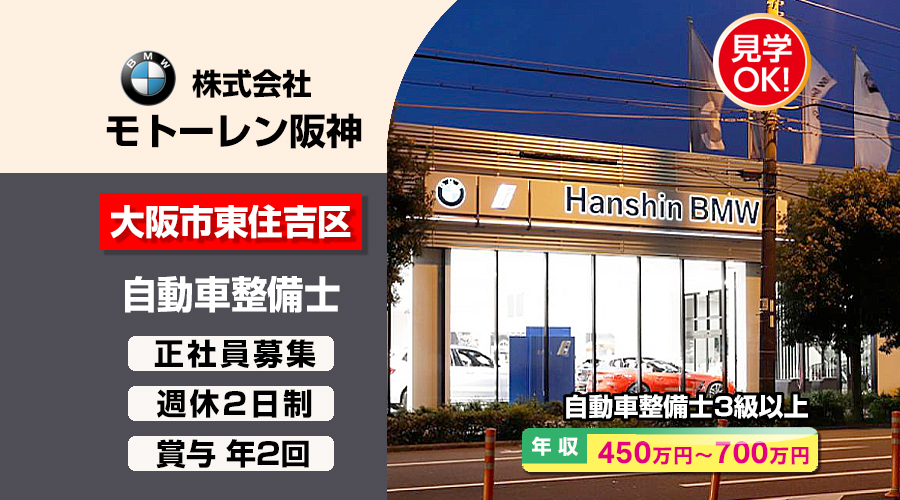 株式会社モトーレン阪神(Hanshin BMW 大阪南支店)【モトーレン阪神】 自動車整備士・メカニック(大阪市東住吉区)