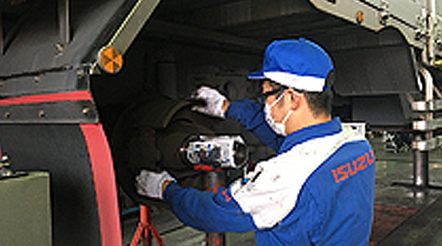 ※まずは「できること」から徐々にお任せしていきます。ISUZUの小型~大型トラック、バスなどを中心に、他メーカーの乗用車の車検・整備なども手がけます。