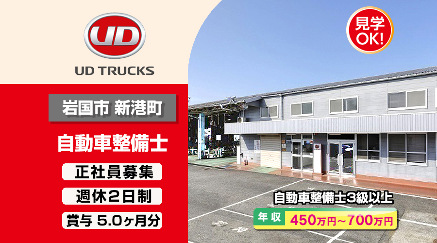 UDトラックス株式会社 (岩国カスタマーセンター)【UDトラックス】 自動車整備士・メカニック(岩国市新港町)
