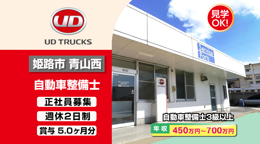 自動車整備士3級以上求人!年収450万円以上!兵庫県姫路市青山西 UDトラックス株式会社 転職採用情報!在職中の方でもエージェントが転職をサポート致します。
