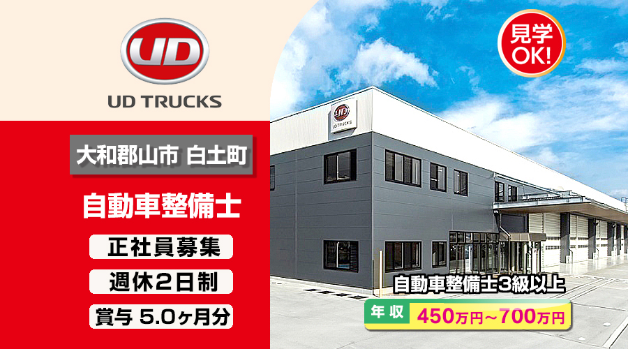自動車整備士3級以上求人!年収450万円以上!奈良県大和郡山市白土町 UDトラックス株式会社 転職採用情報!在職中の方でもエージェントが転職をサポート致します。