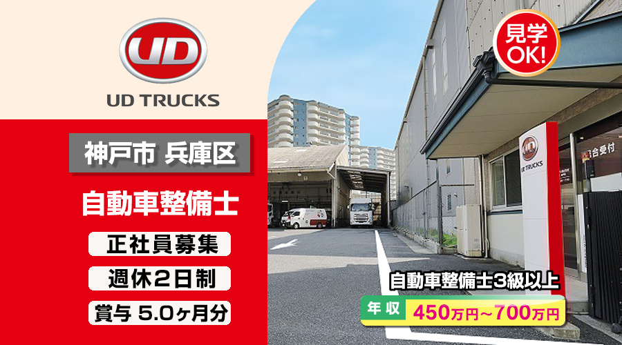 自動車整備士3級以上求人!年収450万円以上!兵庫県神戸市兵庫区 UDトラックス株式会社 転職採用情報!在職中の方でもエージェントが転職をサポート致します。