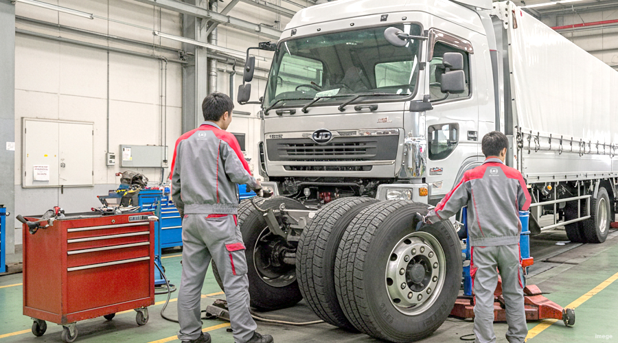 ※まずは「できること」から徐々にお任せしていきます。トラック、バスなどを中心に、他メーカーの乗用車の車検・整備なども手がけます。