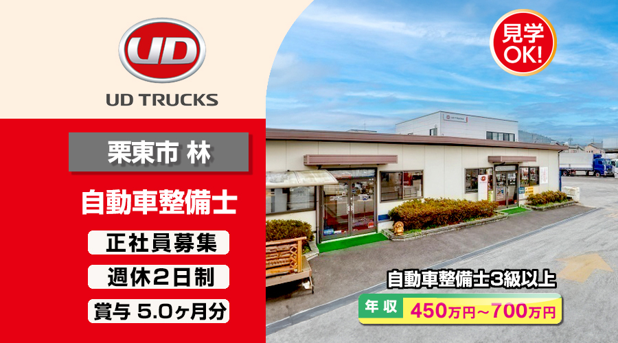 自動車整備士3級以上求人!年収450万円以上!滋賀県栗東市林 UDトラックス株式会社 転職採用情報!在職中の方でもエージェントが転職をサポート致します。