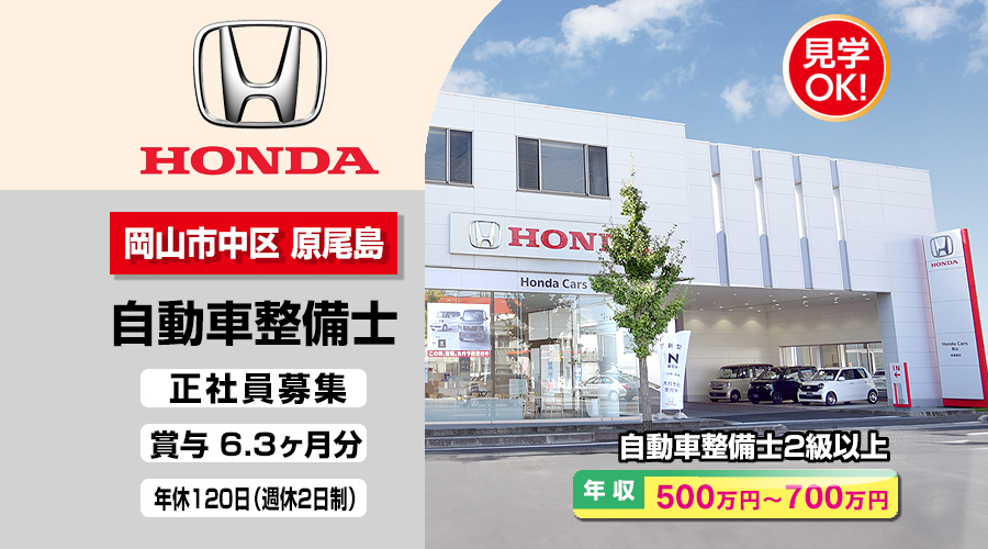 株式会社ホンダモビリティ中四国 (ホンダカーズ岡山 後楽園店)【ホンダモビリティ中四国】 自動車整備士・メカニック(岡山市中区原尾島)
