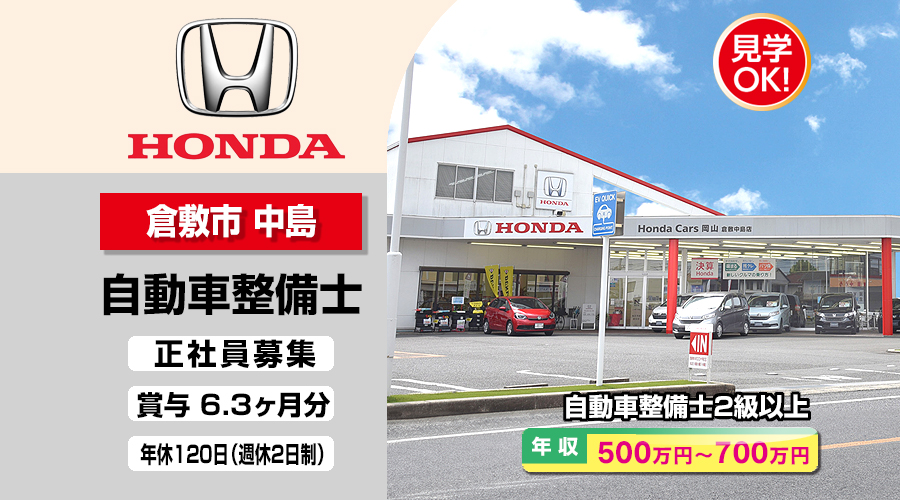 株式会社ホンダモビリティ中四国 (ホンダカーズ岡山 倉敷中島店)【ホンダモビリティ中四国】 自動車整備士・メカニック(倉敷市中島)