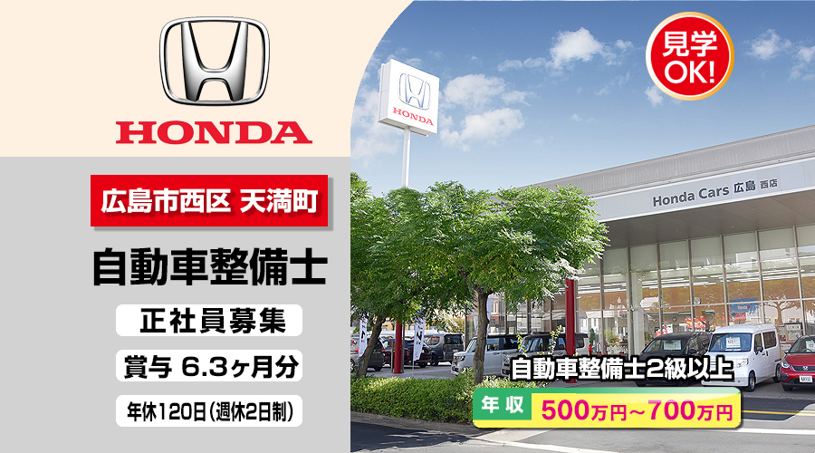 株式会社ホンダモビリティ中四国 (ホンダカーズ広島 西店)【ホンダモビリティ中四国】 自動車整備士・メカニック(広島市西区天満町)