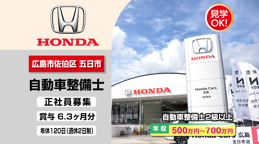 株式会社ホンダモビリティ中四国 (ホンダカーズ広島 五日市店)【ホンダモビリティ中四国】 自動車整備士・メカニック(広島市佐伯区五日市)