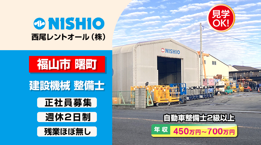 西尾レントオール株式会社 (福山営業所)【西尾レントオール】 建設機械 整備士(福山市曙町)