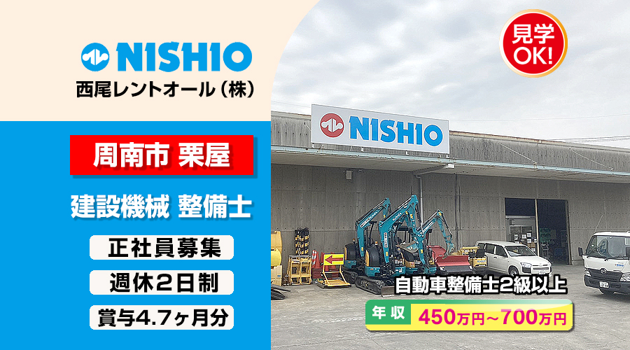 西尾レントオール株式会社 (周南機械ヤード)【西尾レントオール】 建設機械 整備士(周南市栗屋)