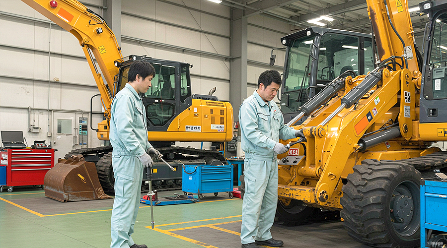 🔧リース用の建設機械、産業車両の点検・整備・部品取り付け、清掃