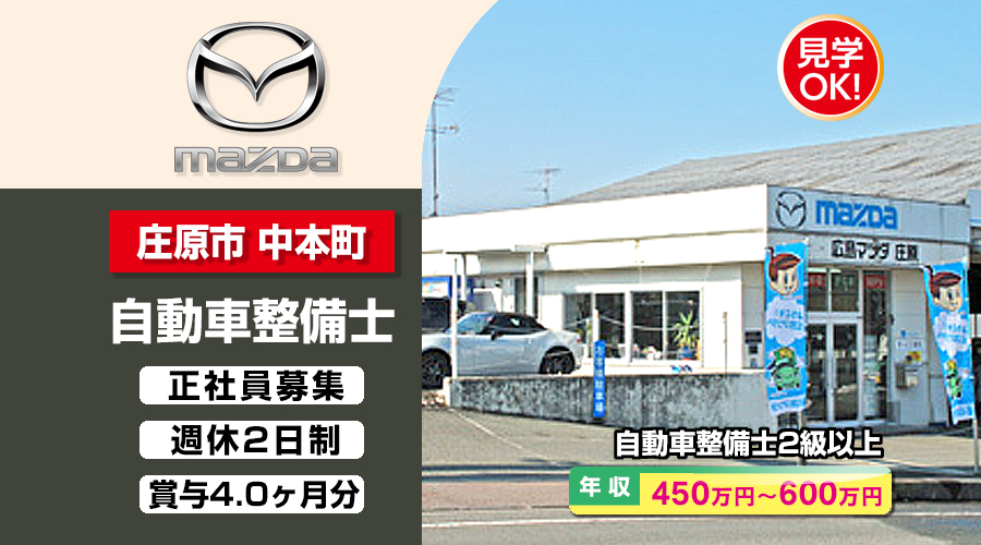 株式会社 広島マツダ (庄原店)【広島マツダ】 自動車整備士・メカニック(庄原市中本町)