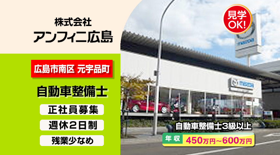 株式会社アンフィニ広島 (元宇品店)【アンフィニ広島】 自動車整備士・メカニック(広島市南区元宇品町)
