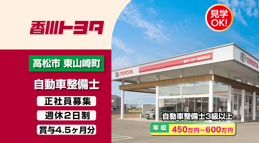 香川トヨタ自動車株式会社 (高松春日店)【香川トヨタ】 自動車整備士・メカニック(高松市東山崎町)