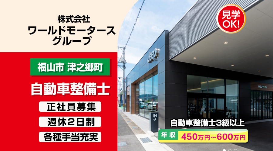 株式会社ワールドモータースグループ (Jeep 福山)【ワールドモータースグループ】 自動車整備士・メカニック(福山市津之郷町)