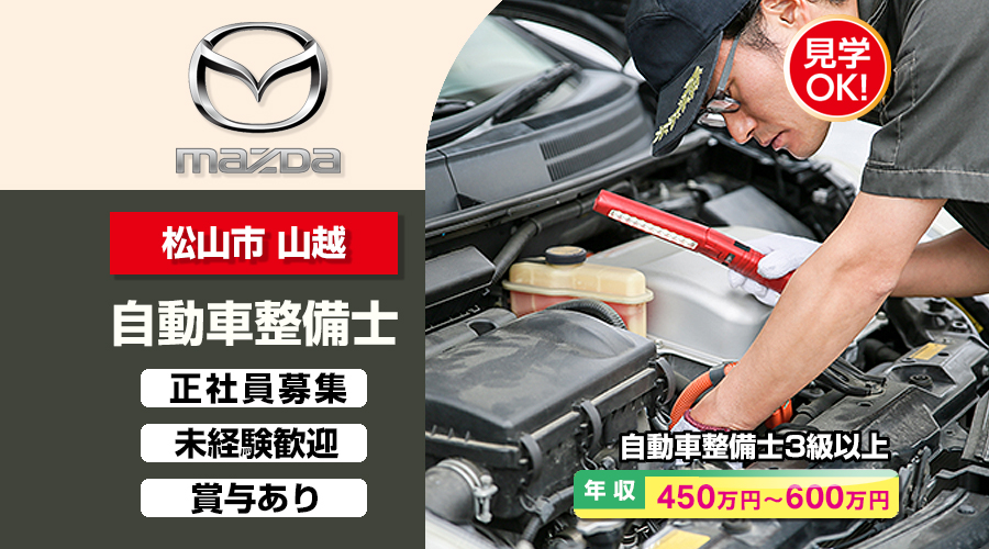 自動車整備士2級以上求人!年収450万以上!愛媛県松山市 株式会社 西四国マツダ転職採用情報!働きながらでも転職サポート致します。
