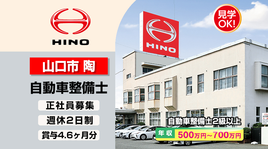 山口日野自動車株式会社 (山口支店)【山口日野自動車】 自動車整備士・メカニック(山口市陶)