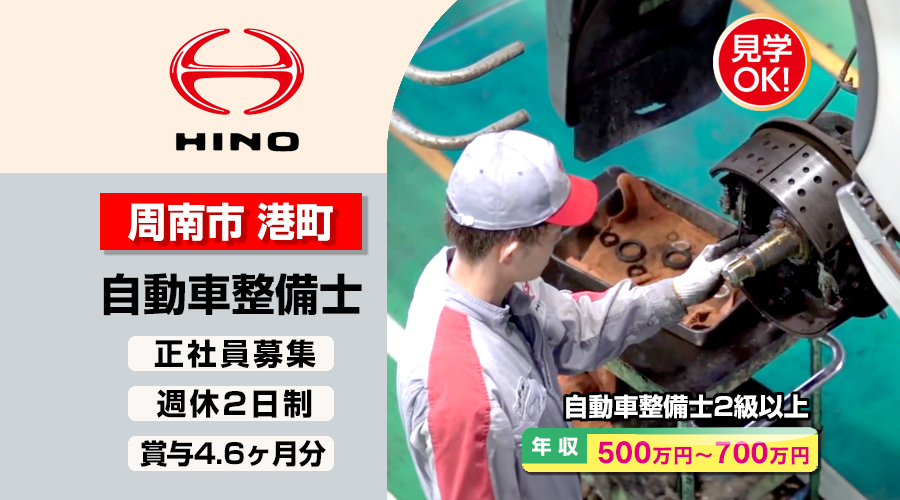 山口日野自動車株式会社 (周南支店)【山口日野自動車】 自動車整備士・メカニック(周南市港町)