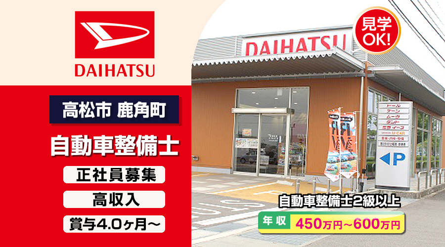 香川ダイハツ販売株式会社 (空港通店)【香川ダイハツ販売】 自動車整備士・メカニック(高松市鹿角町)