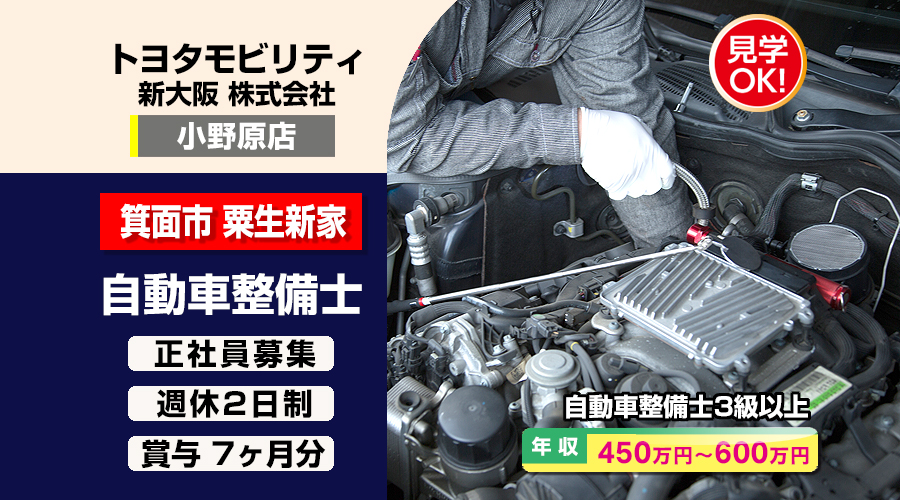 トヨタモビリティ新大阪株式会社 (小野原店)【トヨタモビリティ新大阪】 自動車整備士・メカニック(箕面市粟生新家)