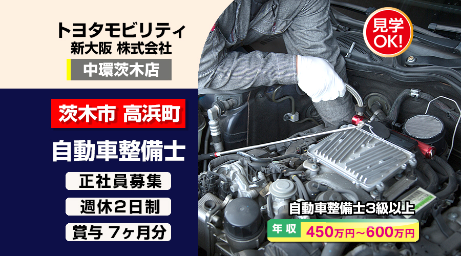 トヨタモビリティ新大阪株式会社 (中環茨木店)【トヨタモビリティ新大阪】 自動車整備士・メカニック(茨木市高浜町)