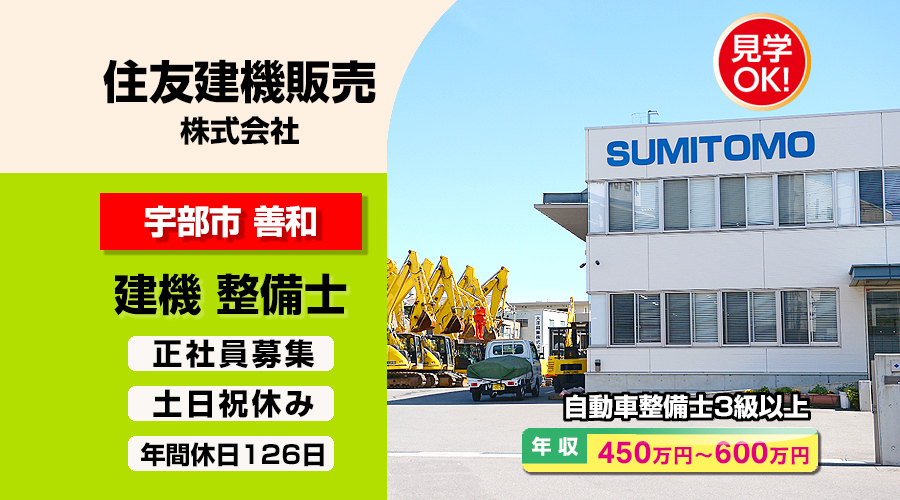 住友建機販売 株式会社 (宇部営業所)【住友建機販売】 建機整備士・メカニック(宇部市大字善和)
