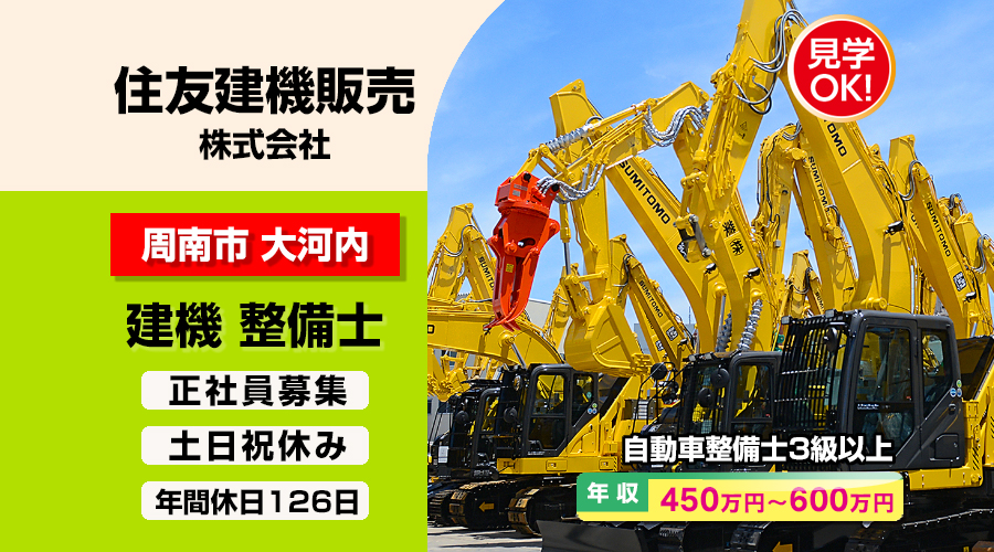 住友建機販売 株式会社 (周南営業所)【住友建機販売】 建機整備士・メカニック(周南市大河内)