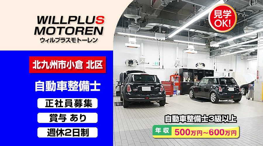 ウイルプラスモトーレン株式会社【ウイルプラスモトーレン】 自動車整備士・メカニック(北九州市小倉北区木町)