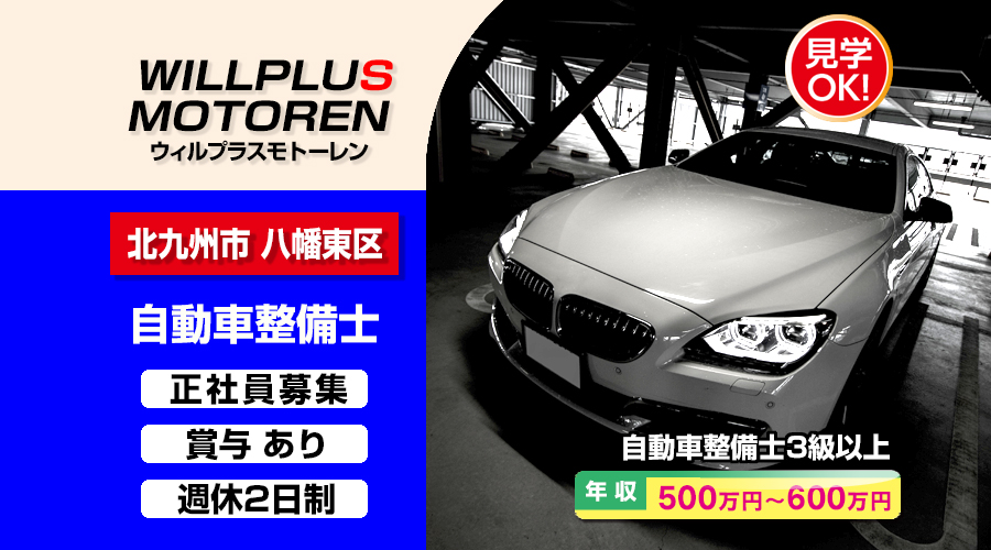 ウイルプラスモトーレン株式会社【ウイルプラスモトーレン】 自動車整備士・メカニック(北九州市八幡東区桃園)
