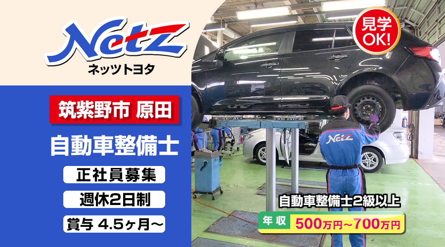 ネッツトヨタ福岡株式会社【ネッツトヨタ福岡】 自動車整備士・メカニック(福岡県筑紫野市原田)