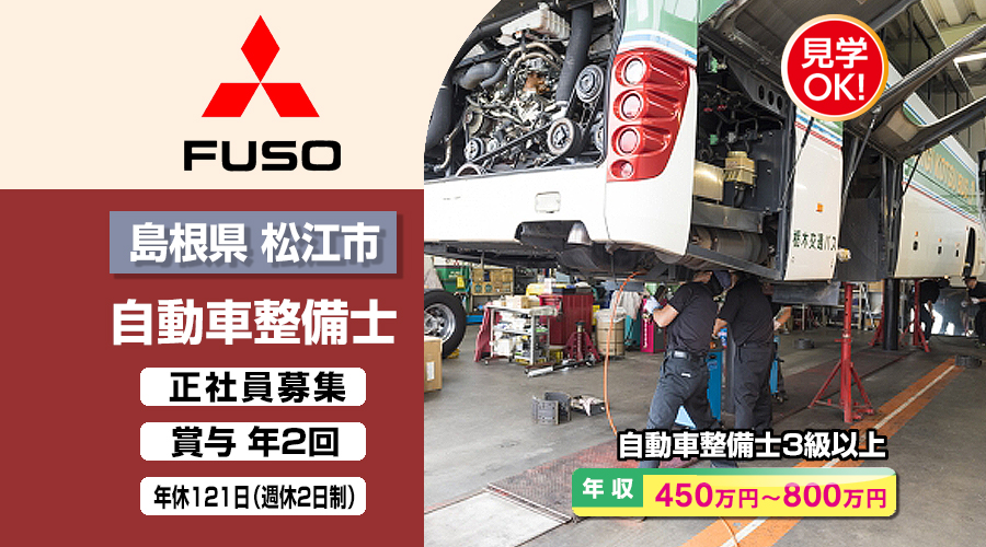 三菱ふそうトラック・バス株式会社【三菱ふそう】 自動車整備士・メカニック(島根県松江市)