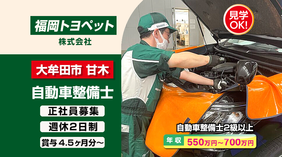 福岡トヨペット株式会社【福岡トヨペット】 自動車整備士・メカニック(福岡県大牟田市甘木)