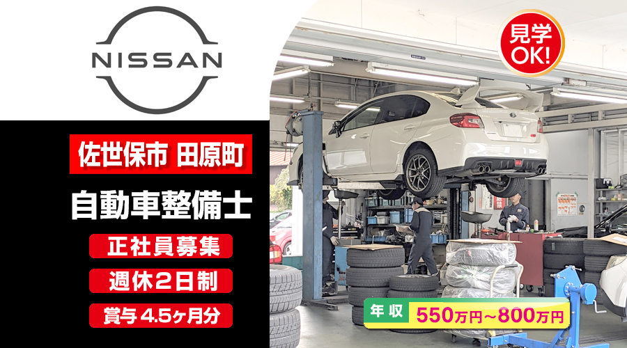 日産プリンス長崎販売株式会社【日産プリンス長崎】 自動車整備士・メカニック(長崎県佐世保市田原町)