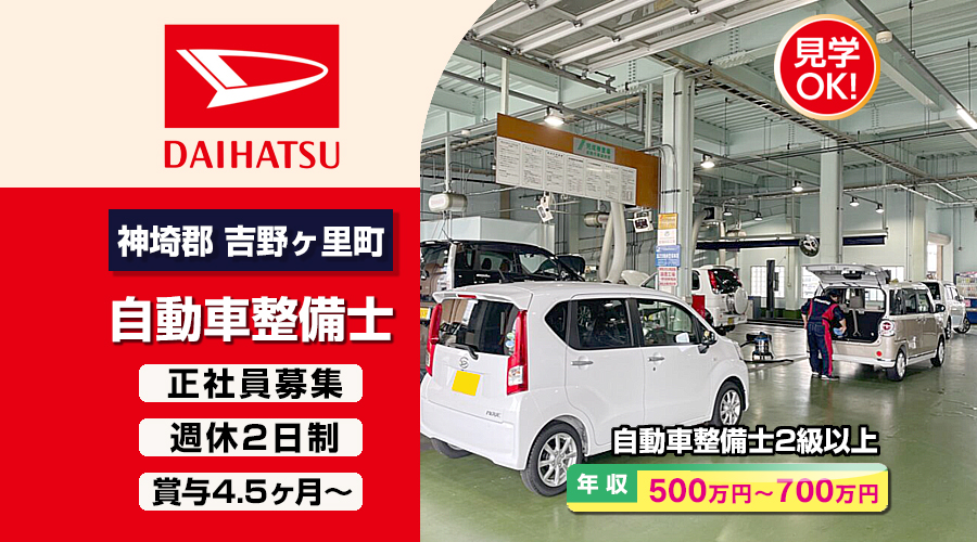 佐賀ダイハツ販売株式会社【佐賀ダイハツ販売】 自動車整備士・メカニック(佐賀県神埼郡吉野ヶ里町)