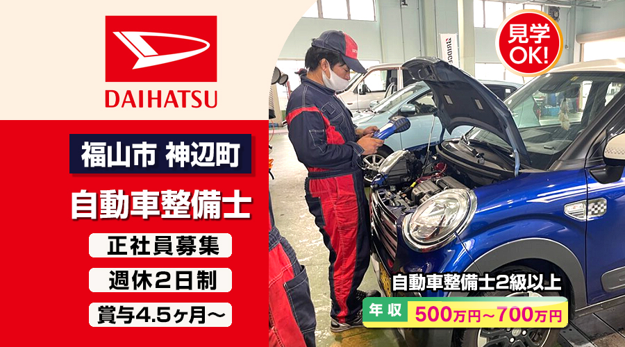 ダイハツ広島販売株式会社【ダイハツ広島販売】 自動車整備士・メカニック(広島県福山市神辺町)